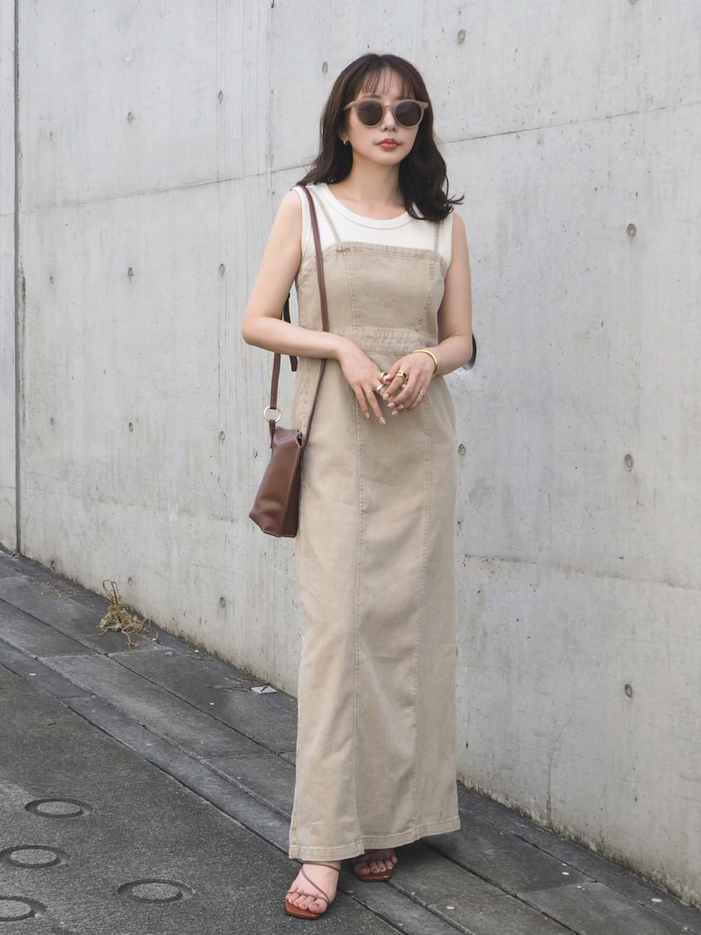 shino◡̈*❤︎のワンピース「【大人フェミニンなデニムstyle。】バックスリットハイウエストロングデニムキャミワンピース」を使ったコーディネート