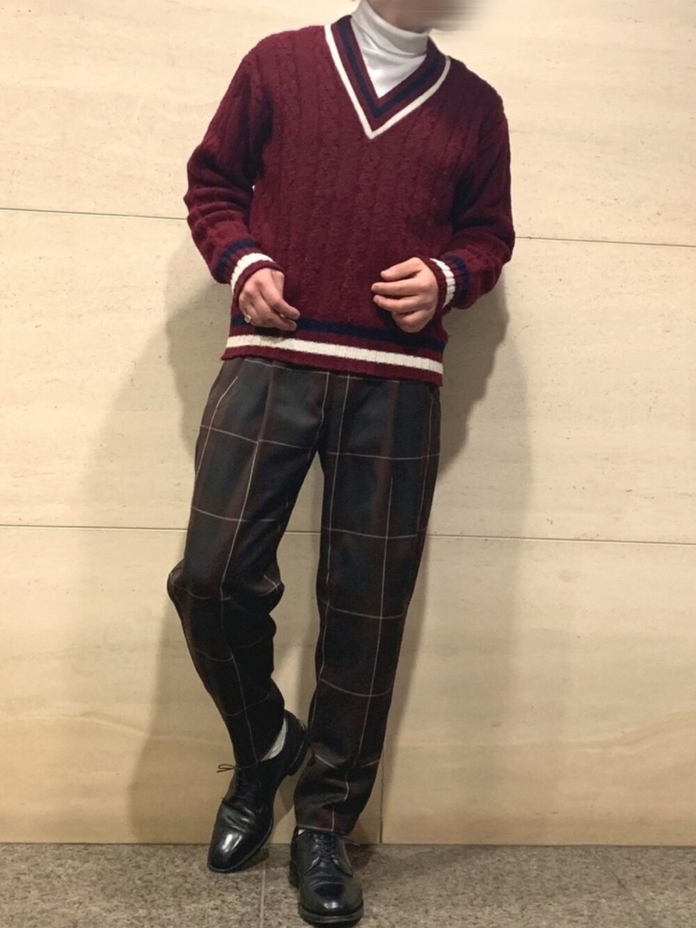 ご覧いただきありがとうございます😃🙌🙌 今回は、、チェックパンツを使ったコーデ!☑️ Lui’sのチェックテーパードパンツ、年末くらいに見かけて、気になったけど購入見送ってたんですけど、年明けにもう一度見に行ったら値下げかかってたんで買っちゃいました😍✨ ブラウン系のチェックパンツに、赤のチルデンニットを合わせて、トラッドな雰囲気に✨ コート着たVer.は小窓にあげますが コートとシューズは黒 インナーと靴下で白 を使って清潔感と統一感をプラスしました!👍 いやぁ、、年明けで新宿Lui’s再訪して本当に良かった😚 いいお買い物ができました😆 最後まで読んでいただきありがとうございます!! もしよろしければ、 いいね、Save、フォローよろしくお願いします🙇♂️🙇♂️!!
