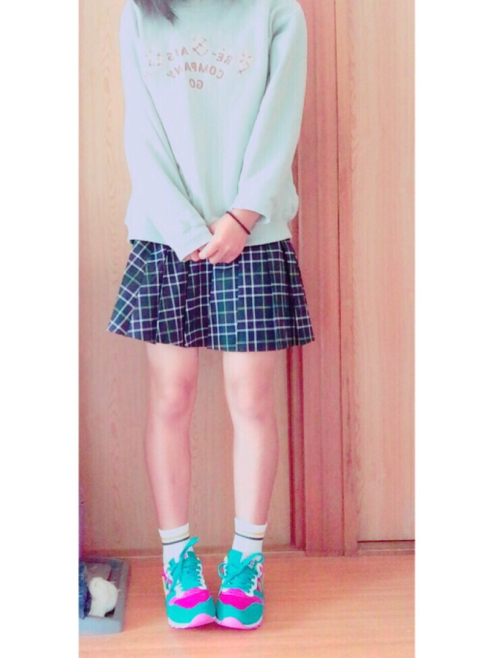 水色のスウェットはお母さんがくれました😆 最近緑のプリーツスカートが好きすぎる💓 靴も新しく買ってもらいました!💫