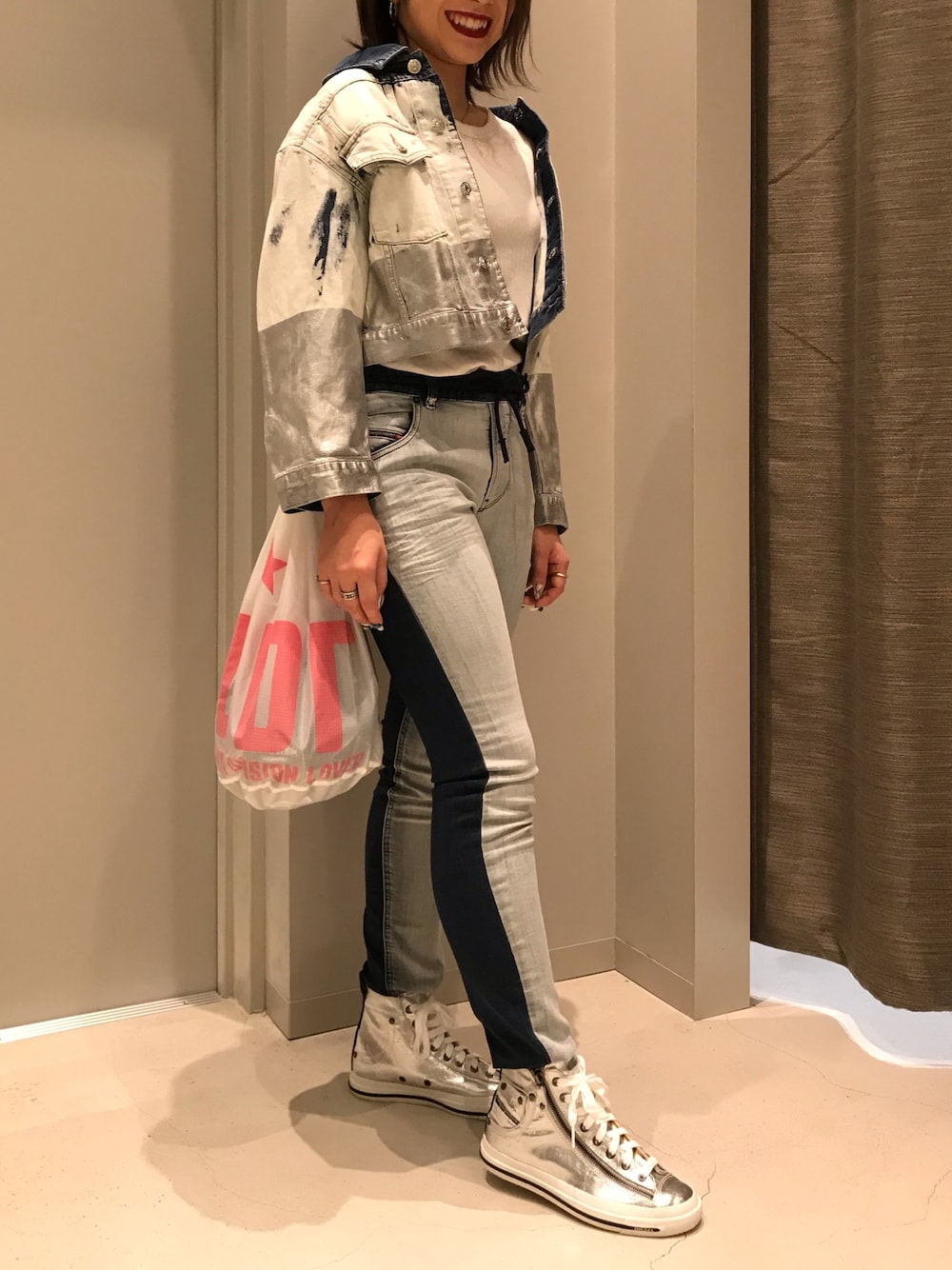SHINOのデニムパンツ「レディース デニムパンツ ジョグジーンズ キャロットレッグ」を使ったコーディネート