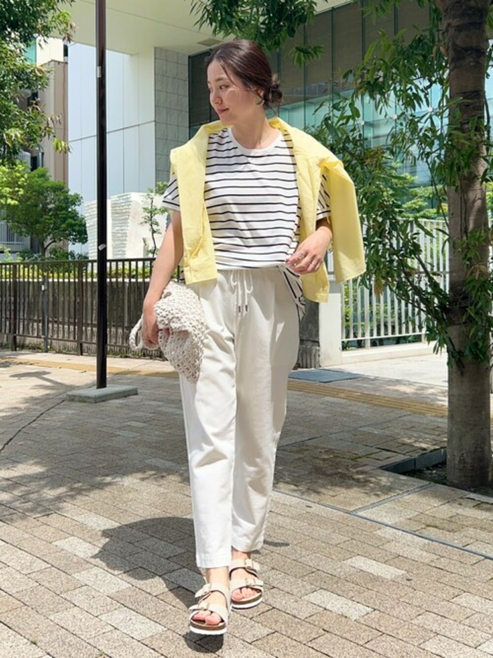 オールホワイトで夏らしい爽やかなスタイリングにしました。 シャツを肩掛けし、カラーで遊び心もプラス。 まくらめのバッグをクラッチ持ちし、夏のお出かけにおすすめのラフなスタイルです。 【Instagram】 my account▶︎ @shoolarue_shino Insta LIVE▶︎ @shoolarue_official 毎週木曜20時〜出演中 インスタも是非チェックお願いします✨