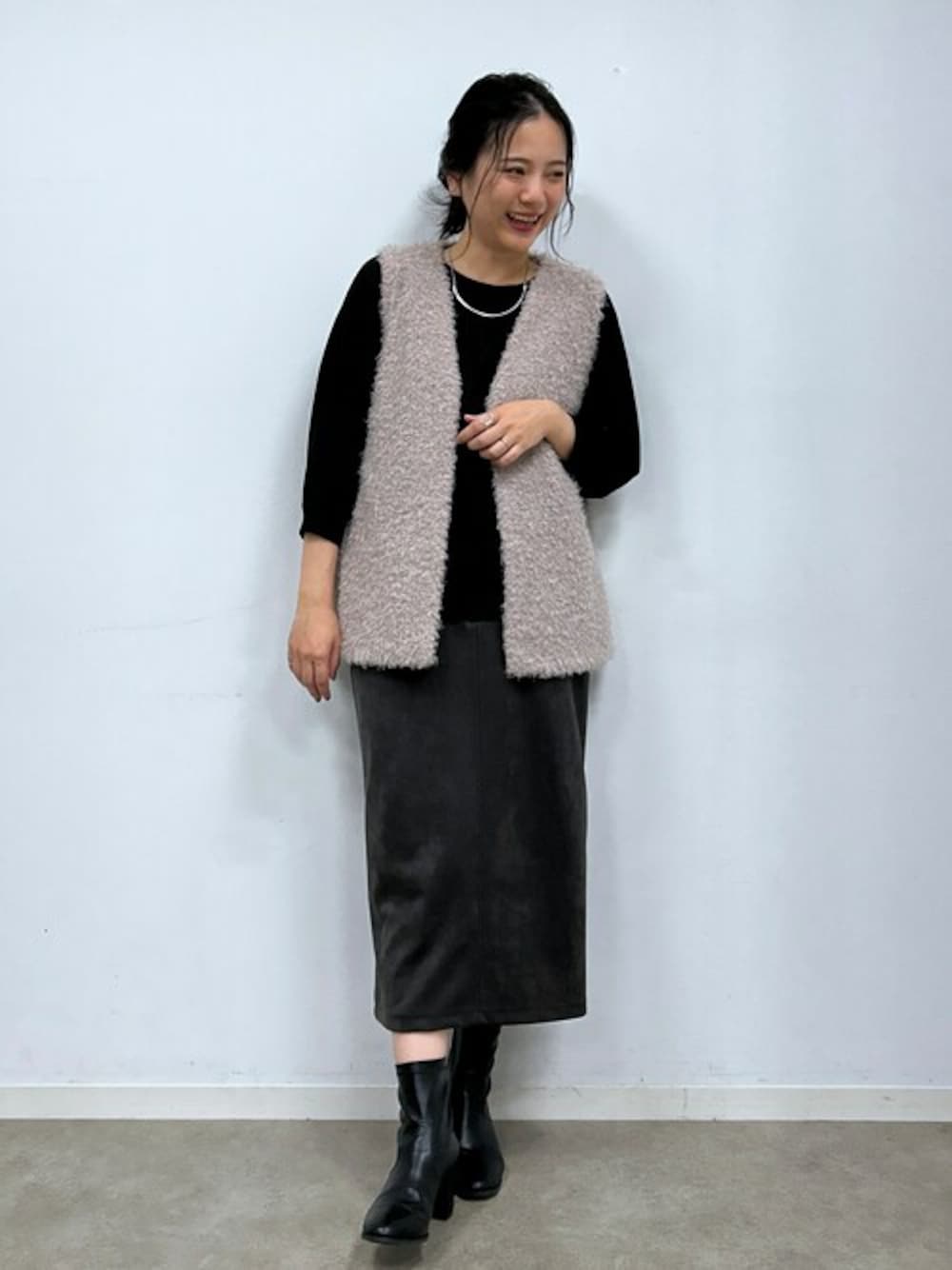 【スタイリングポイント】 ブラック×グレーで大人カジュアルなスタイルです。 ジレを加えれば、トレンドライクな雰囲気と体型カバーも叶えてくれます。 ジレは柔らかいグレーのカラーなので、全体がモノトーンにまとまります。 【Instagram】 my account▶︎ @shoolarue_shino Insta LIVE▶︎ @shoolarue_official 毎週木曜20時〜出演中 インスタも是非チェックお願いします✨