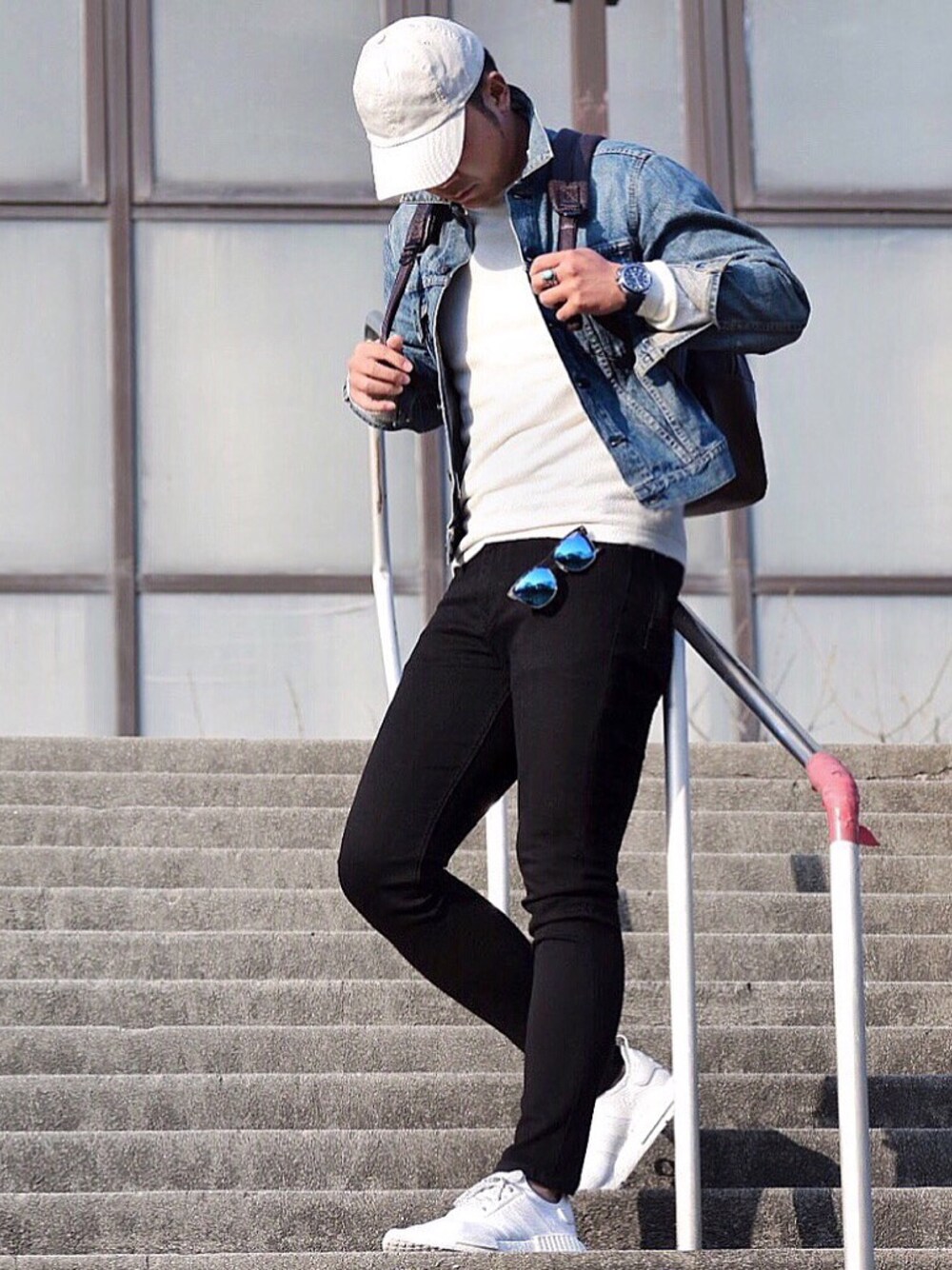 カジュアルスタイル🚶 久しぶりにキャップ着用🌪 ZARAの新作黒スキニーデニムは 膝裏もしっかりフィットして調子いいです👌