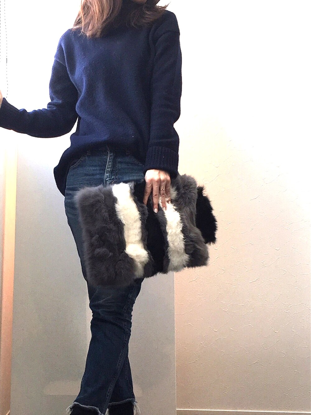 ファーのクラッチは持ってるだけでフワフワで癒される コートに毛がついちゃうので黒のコートは避けてますが…