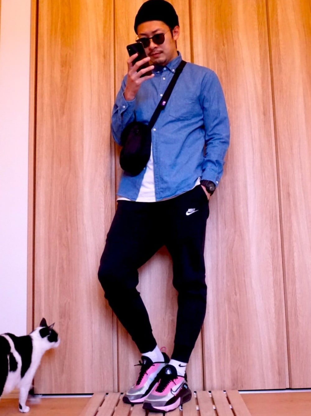 春に向けたスポーツミックスコーデ。 シューズはNIKEのエアマックス2090。