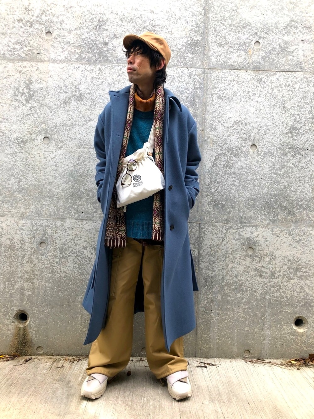 生地が厚めのニットと裏地付きのウールコートで真冬コーデにしてみました! それ以外のアイテムは同系色で合わせてます。 そして白の巾着バッグを中心に持ってくる事で全体を引き締めてみました。 明日で今年も最後ですね! 来年もよろしくお願いします。 よいお年を‼︎