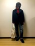 今日は近くのカフェでまったりしたいなと思って組んだコーディネートです。 去年から赤にハマっていて今回はスウェットぽい風合いが面白いと思って買ったウールのタートルネックセーターを主役にキレイなテーパードシルエットのデニムを合わせ、見えてませんが中にダブルの紺ブレザーと厚底の革靴で大人っぽさもプラスしました。 白のキャンバストートはプリントが少しモードっぽく見せてくれて外しにもなるので気に入っています。 アウターのUNIQLOで買った+Jのオーバーサイズのピーコートはクラシカルなイメージを与えてくれてUNIQLOの中だとかなり高かったけど買ってからかなり愛用しています。