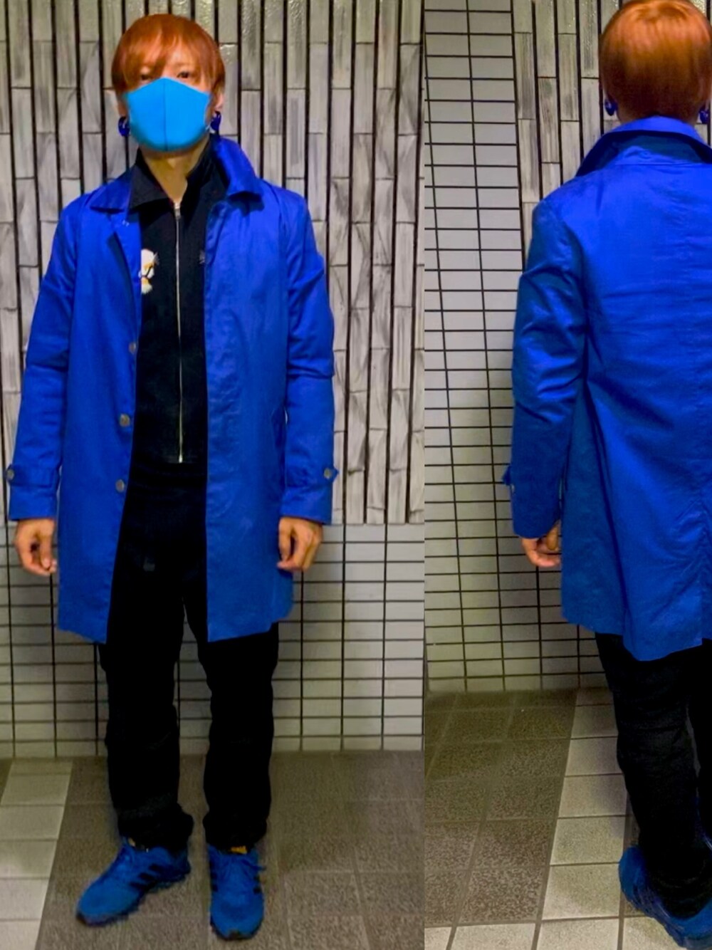 青黒 水色マスクもっと頼んだら良かった😭 写真撮るのに襟元とかグダグダでどうもすいません🙇♂️ 最近WEARの使い方わかってきだしたおじさん👨🦰
