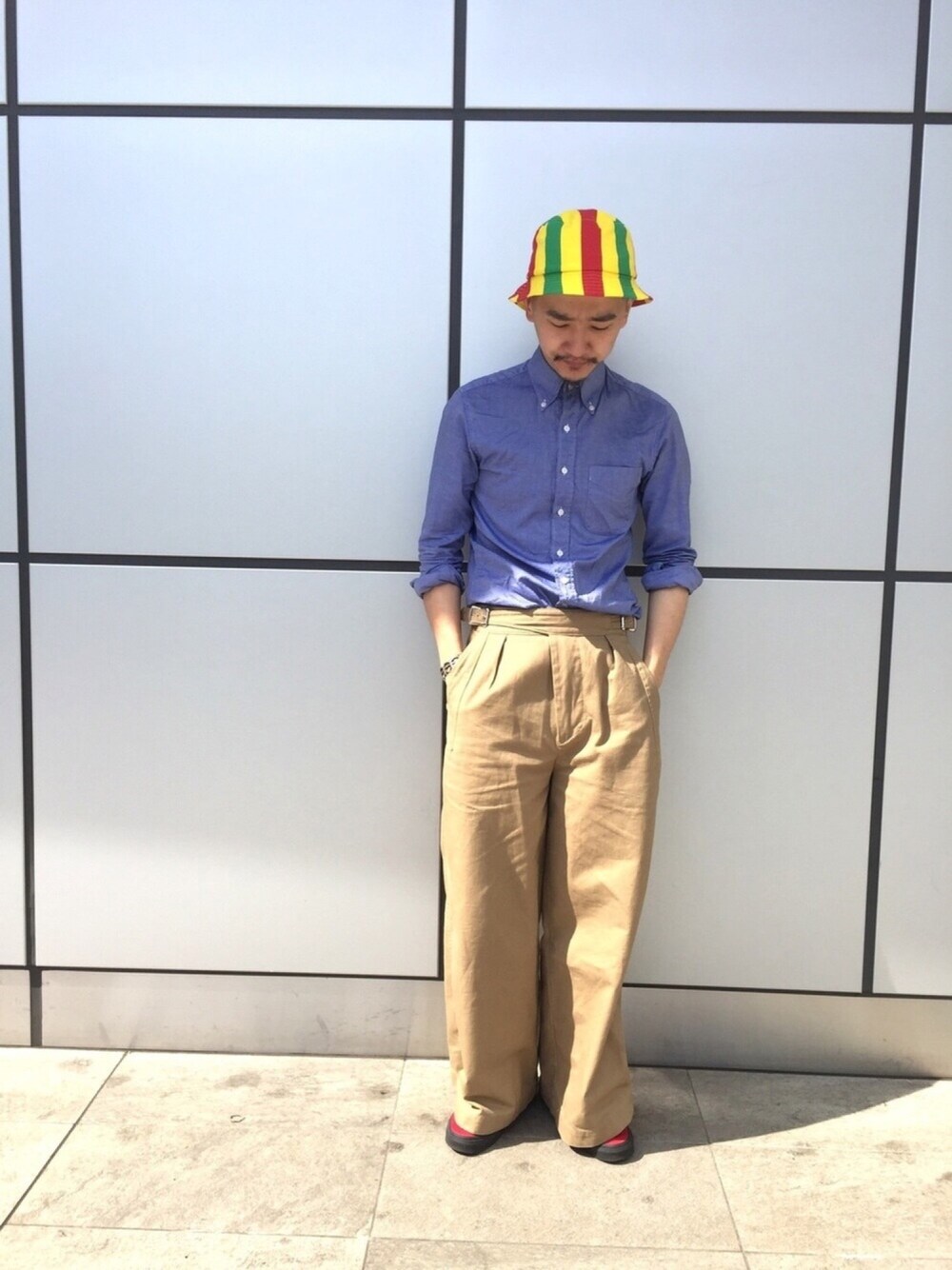 今日は気温も高く花見日和というわけで ラスタカラーをふんだんに使った コーディネート。 ラフになりすぎないよう タックインスタイルで ほどよく引き締めました。 もう少し暖かくなれば これでレザーサンダル合わせても 上品かつリラックス感出せていいですね。