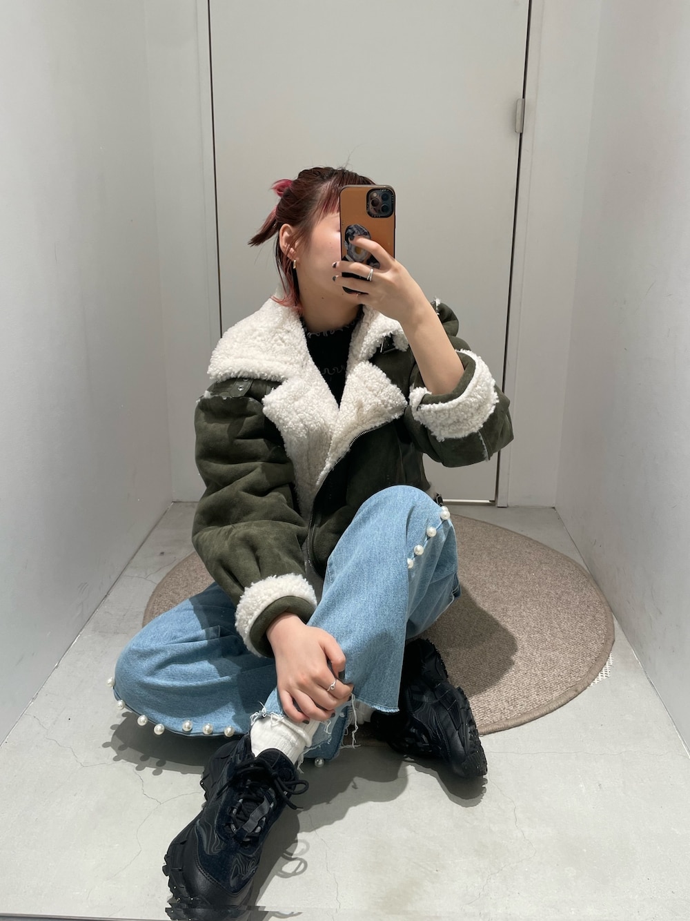 shio2425(CIAOPANIC)のムートンコート「ショートフェイクムートンボア切替ジャケット」を使ったコーディネート