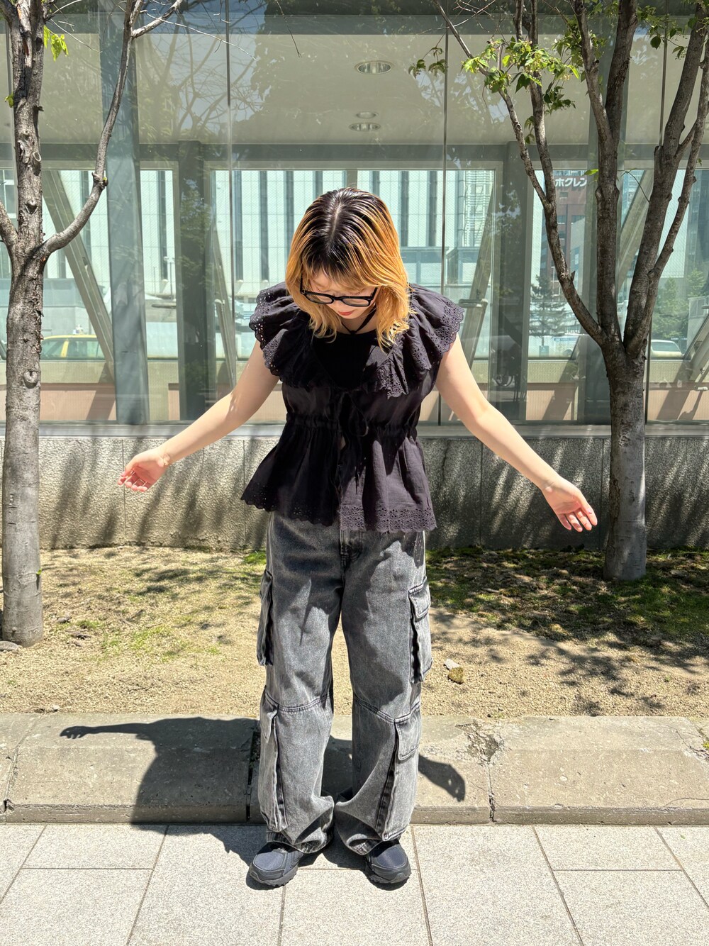 骨格ナチュラル 着用アイテム:カーゴパンツ サイズ:M ・ユニセックス ・低身長の方でも着れる ・ポケットのデザイン可愛い 着用アイテム:ブラウス ・お洒落見えする一枚 ・着回ししやすい ・ロングシーズンで着れる