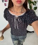 shio2425(CIAOPANIC)のTシャツ/カットソー「【neutral】小花柄レースリボントップス」を使ったコーディネート