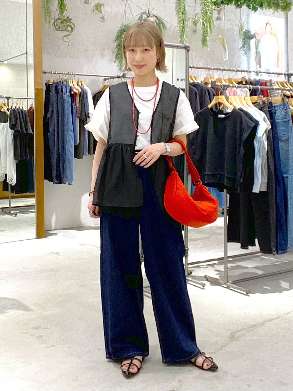 人気のシネマTコーデしてみました! バックプリントのTwinsがシアーベストから透けてるのが個人的にお気に入りです ·͜· デニムはワイドストレートでダボつかず、タイトすぎずで使いやすいです!生地はしっかりめです! モノトーンコーデににネックレスとバックで差し色にしてみました♡