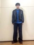 春物のレザーのアウターに発色のいい青シャツをを合わせました! アウターの襟は立てても寝かせてもどちらもかっこよく着られます🕺🏻 ブルーのシャツは、春っぽさが出て可愛いですよね🦋
