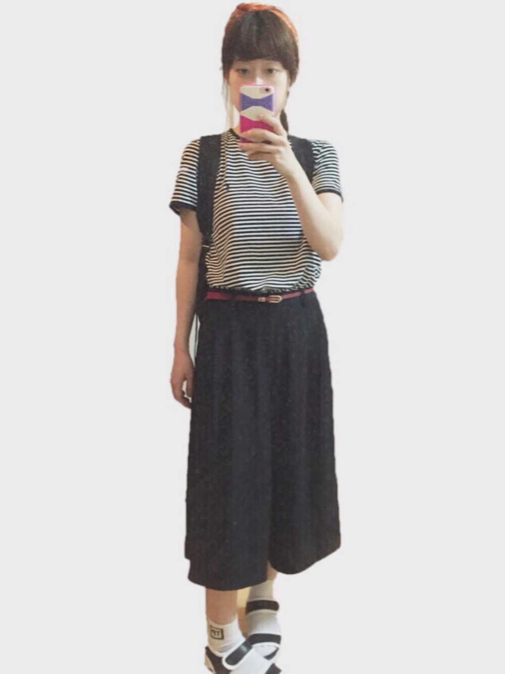 原宿のロキエで購入したTシャツとサンダルは、着心地と履き心地がとってもよくて気に入っています。 シアタープロダクツの靴下は、側面がかわいいです。