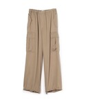 ワークテイストなトップスも、上質なとろみ素材で女性らしい着こなしが叶います。 パンツの裾はドローストリングで絞り膨らみのあるシルエットに。