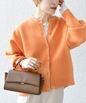 【着用レビュー 】 身長:162cm / 普段サイズ:36or38 / 着用サイズ :onesize 着用アイテム:カーディガン サイズ感:AHゆとりあります。丈感はヒップにかかるくらいです。 素材感・着心地:もちっとした生地感でとても着心地が良いです。柔らかめのオレンジなので他のアイテムとも合わせやすいです。