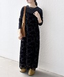 ========== 身長:162㎝ 普段サイズ:36or38 骨格:ウェーブ パーソナルカラー:イエベ春 ▼Instagram▼ @yk_pnn 花柄ベロアのワンピにパンツを重ねて、甘さを抑えたレイヤードスタイルに. 【着用レビュー】 着用アイテム:SHIPS any:〈手洗い可能〉フラワー オパール ロング キャミワンピース ブラック 着用サイズ:ONESIZE サイズ感:肩ひもの長さ調整が出来るので、好きな丈感で着用出来ました。 着心地:ゆとりのある身幅で中のトップス選びに困らないです。 裏地が付いているので一枚でも着用出来ます。 着用アイテム:SHIPS any:〈洗濯機可能〉ドロスト ワイド イージー ベイカー パンツ 着用サイズ:ONESIZE サイズ感:ウエストちょうどでした。後ろはゴム使用で、前は紐で調整出来ます。 丈感は足の甲にかかるくらい。 着心地:柔らかいコットン生地で履き心地よく動きやすかったです。 程よい生地の厚さで形が綺麗でした。 ==========