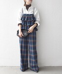 ========== 身長:162㎝ 普段サイズ:36or38 骨格:ウェーブ パーソナルカラー:イエベ春 ▼Instagram▼ @yk_pnn シンプルなシャツとのレイヤードで大人でも取り入れやすいバランスに。 タートルネックも挟むことで季節感と奥行きをプラス。 【着用レビュー】 着用アイテム:SHIPS any:〈洗濯機可能〉チェック フリル ティアード サロペット 着用サイズ:ONESIZE サイズ感:肩ひも部分で丈感調整可能です。 着心地:身幅がワイドめなので、中にシャツとリブニットを重ねても窮屈感なく着用出来ました。 大きめのフリルで体型カバーも◎ ==========