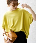 身長:166㎝ 普段サイズ:38 骨格:ナチュラル パーソナルカラー:イエベ春 ゆるっとしたサイドラインパンツと合わせて、大人カジュアルに着ました。 【着用レビュー】 着用アイテム:ワッフル ワイド TEE イエロー 着用サイズ:ONESIZE サイズ感:ヒップがほとんど隠れる丈感。 着心地:しわが気になりません。