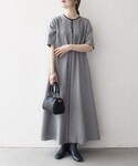 身長:166㎝ 普段サイズ:38 骨格:ナチュラル パーソナルカラー:イエベ春 サンダルと爽やかに、晩夏にもぴったりなコーディネートに。 【着用レビュー】 着用アイテム:ウーステッド パイピング ボタン フレア ワンピース グレー 着用サイズ:ONESIZE サイズ感:足首近い長めの丈感。 着心地:張り付き感のないさらっとした生地です。