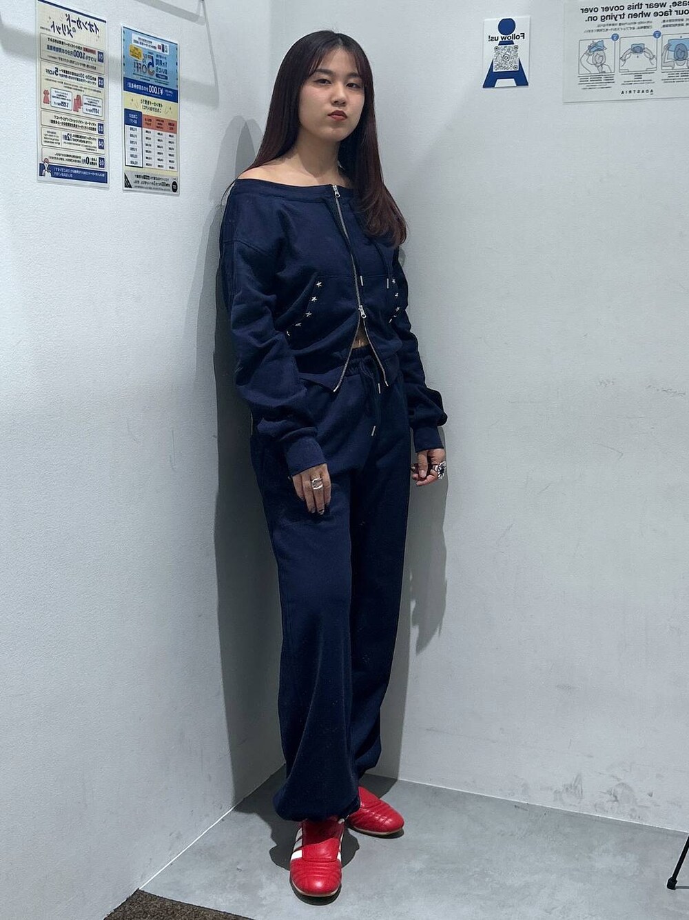 シラベ(ALAND イオンレイクタウンkaze)のスウェット「【セットアップ着用可能】3.3 Field Trip/スター付きオフショルジップ」を使ったコーディネート