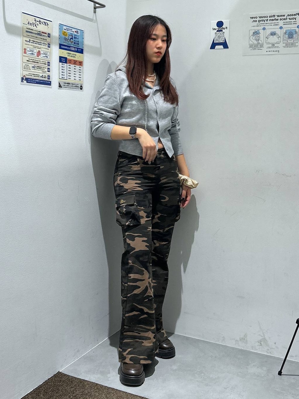 カモフラのフレアパンツを使ったY2Kコーデ⛓️ お尻がピタッとするので私的苦手分野ではあるのですが、サイドにポケットがついている事で お尻のボリュームを誤魔化してくれている(気がする)‼️笑 フレアの形が綺麗なので脚長効果もあるのが嬉しい✨ ﹏﹏﹏﹏﹏﹏﹏﹏﹏﹏﹏﹏﹏﹏﹏﹏﹏﹏﹏﹏﹏ ♡を押しておくと見返しやすくなりますのでポチッとお願いします🫶🏻 Instagram:@_shirabe108 TikTok:@_shirabe108