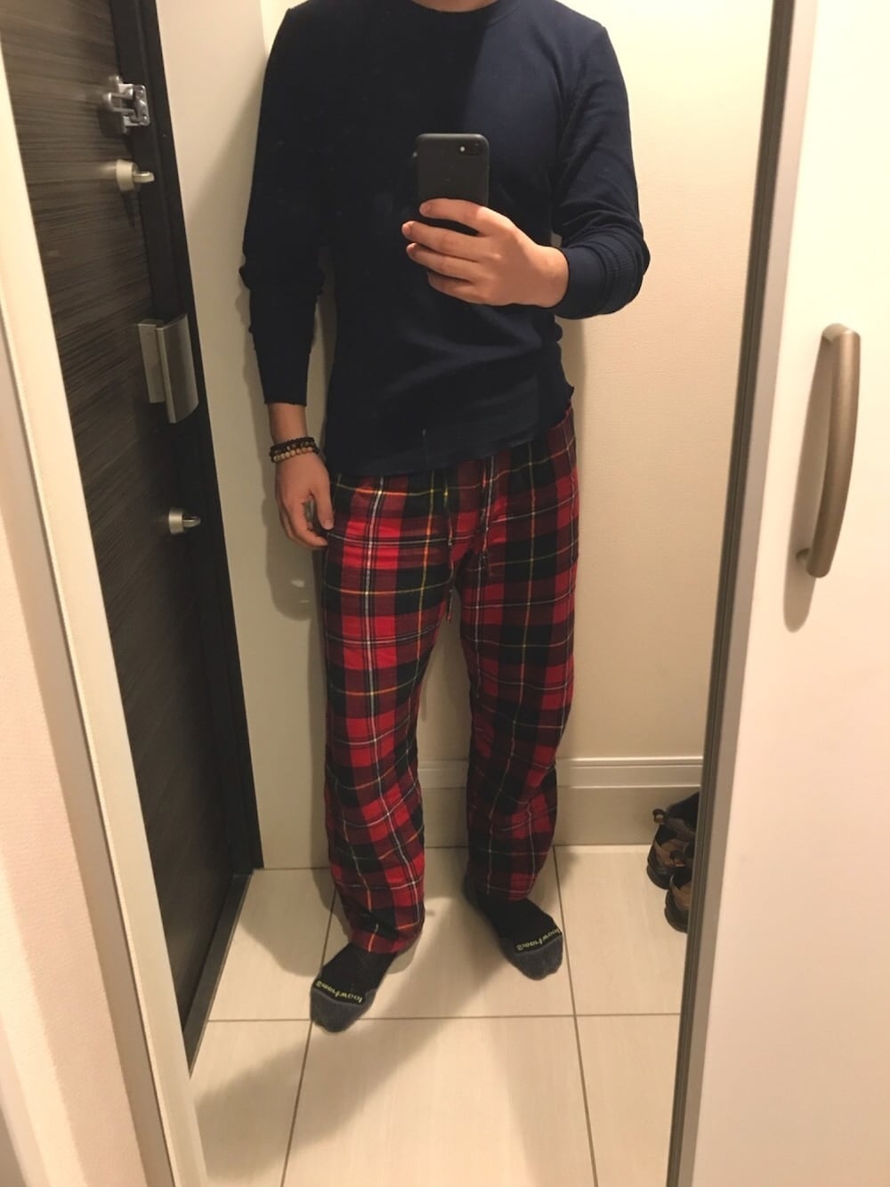 最近の部屋着スタイル。 リラックスなラウンジパンツに、 ヘインズのサーマルシャツとスマートウールのソックスは温かいから色違いで複数持ち👌コンビニなど近場ならこれにダウンなどを羽織って出掛ける事も多々あり。
