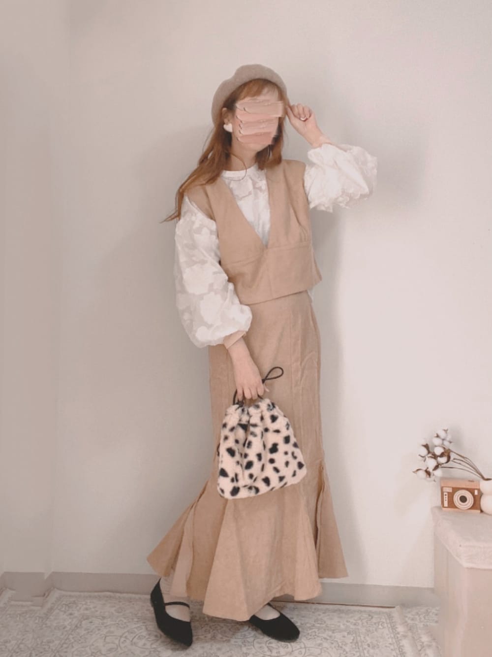 shiroのセットアップ「コーデュロイビスチェ+マーメイドスカート セットアップ」を使ったコーディネート
