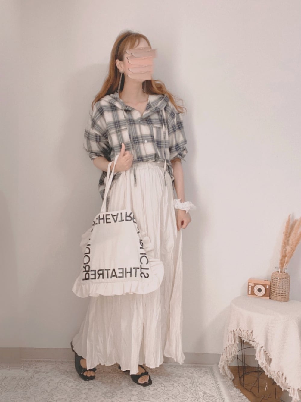 shiroのシャツ/ブラウス「チェックBIGフードシャツ」を使ったコーディネート