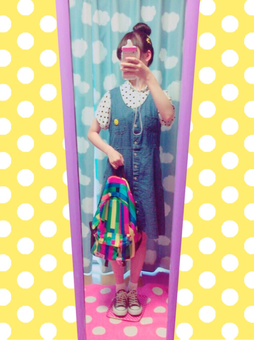 今日は地元のお祭りに行きます! 部活の後輩のステージを応援します🎌 去年まで3年間出てたから今年も出たい…😢 お祭りだからカラフルキッズコーデもいいかと思ったけど先輩風吹かせるためにわたし的にオトナっぽい古着コーデ✨✨笑 胸のバッジはスマイル!爪も黄色にぬりぬり中です💅