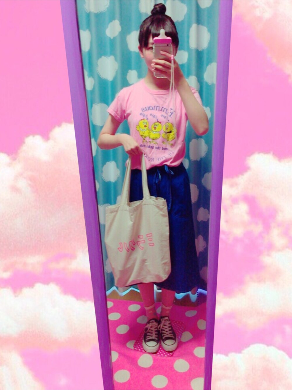 ちょっとお久しぶりです!最近買ったスカートとカバンを使ってみた!というコーディネート! 古着のスカートはエプロンっぽい感じになってて、前で縛る形! トートバックは、ミラクルがなかなか写真に写らなくて、暗くしたらどんどん脚が暗く…っていうかピンクに😭😭