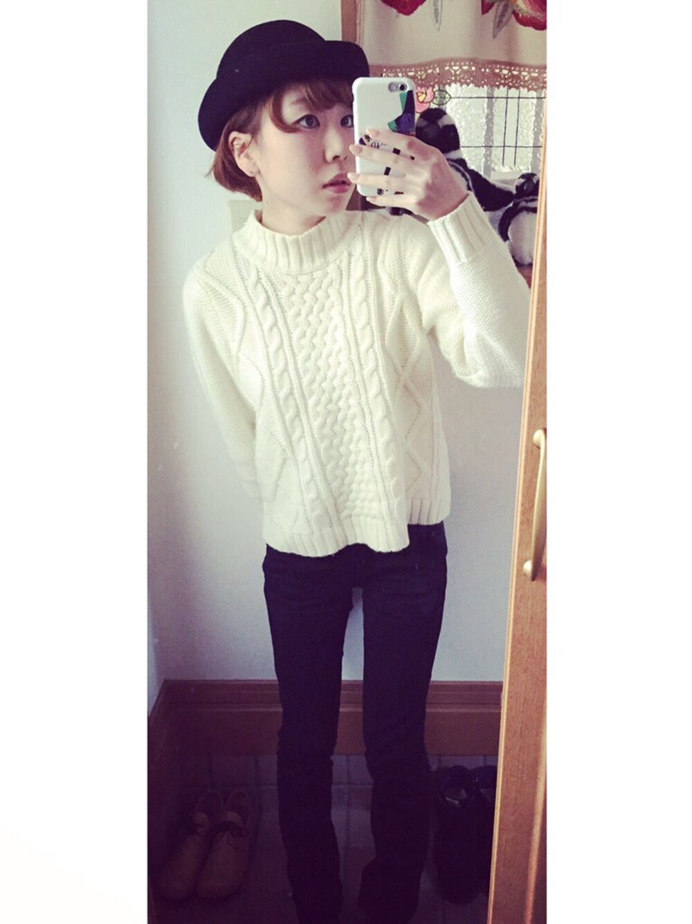 モノトーンコーデ パンツ UNIQLO ニット earth リュック Manhattan シューズ ZUCCA Twitter @kajisakura