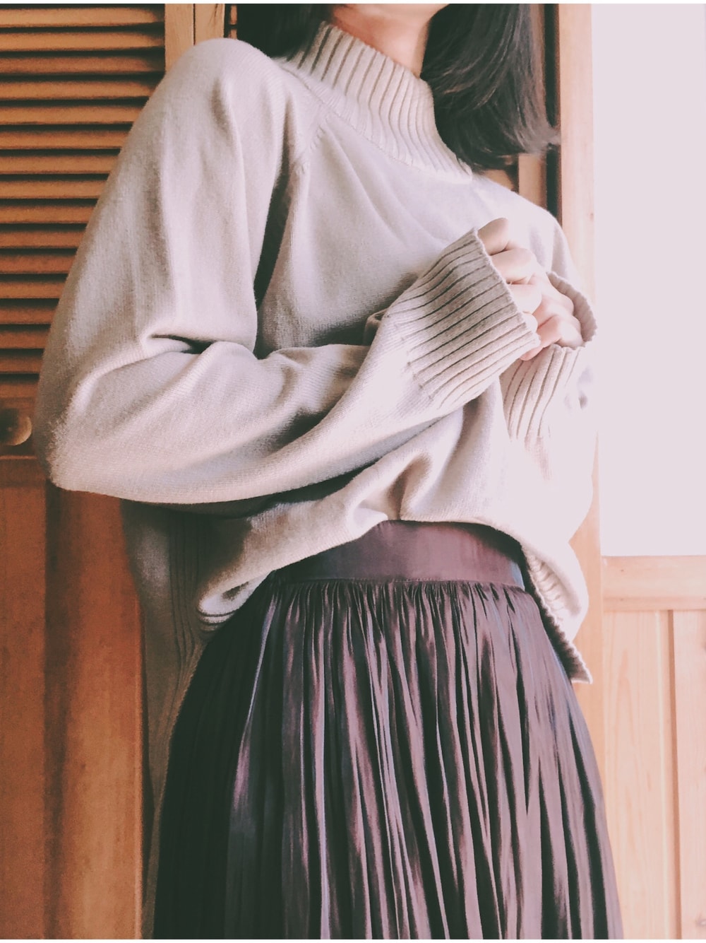 しろのニット/セーター「ストレッチハイネックルーズセーター」を使ったコーディネート