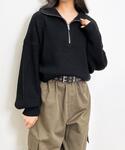 rikaのニット/セーター「ハーフジップ片畦/ニット」を使ったコーディネート