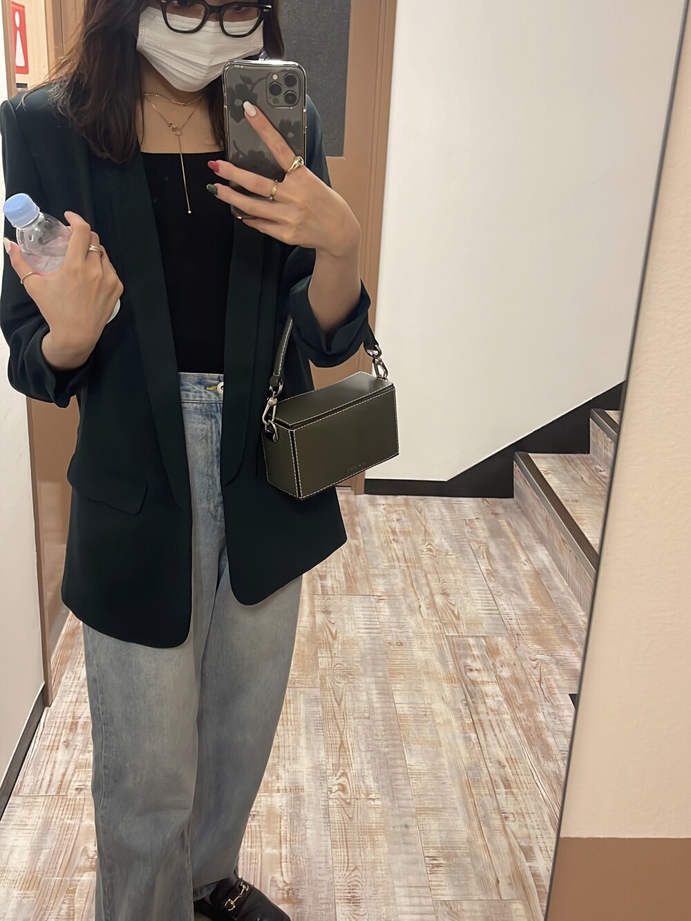 ジャケット羽織りたいけど、かっちりしすぎたくなかったのでデニムで👖