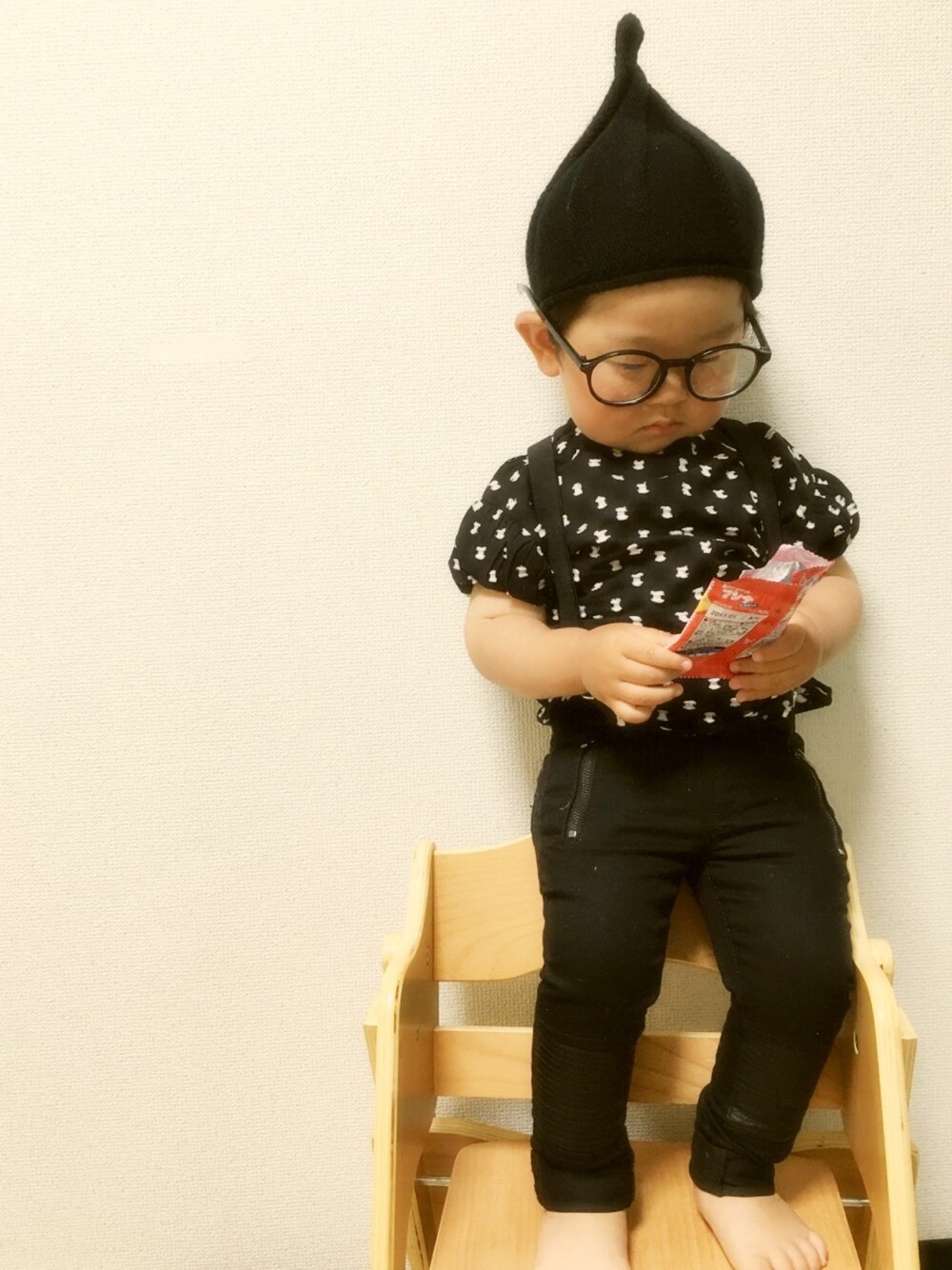 ブラックコーデ🙆 本日もpetit mainさんでドラフト参加させて頂いてます(^^) こちらのブラウス可愛くてずっと悩んでたもの👕 やっぱり欲しくなっちゃって、、 男の子だけど着せちゃいます😂😂 うん♡可愛い♡😂