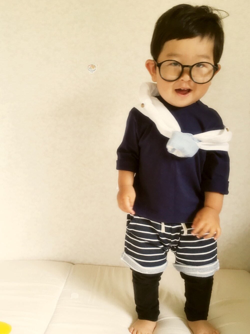 ネイビーコーデ🙆 何か企んでる顔してるな...😏 髪の毛もボサボサでごめんなさい😂😂