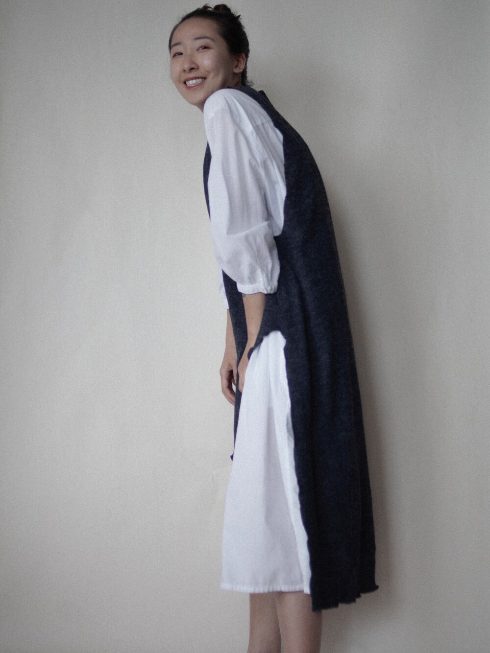 衬衫裙加针织罩裙 宽松和收紧的小拉扯