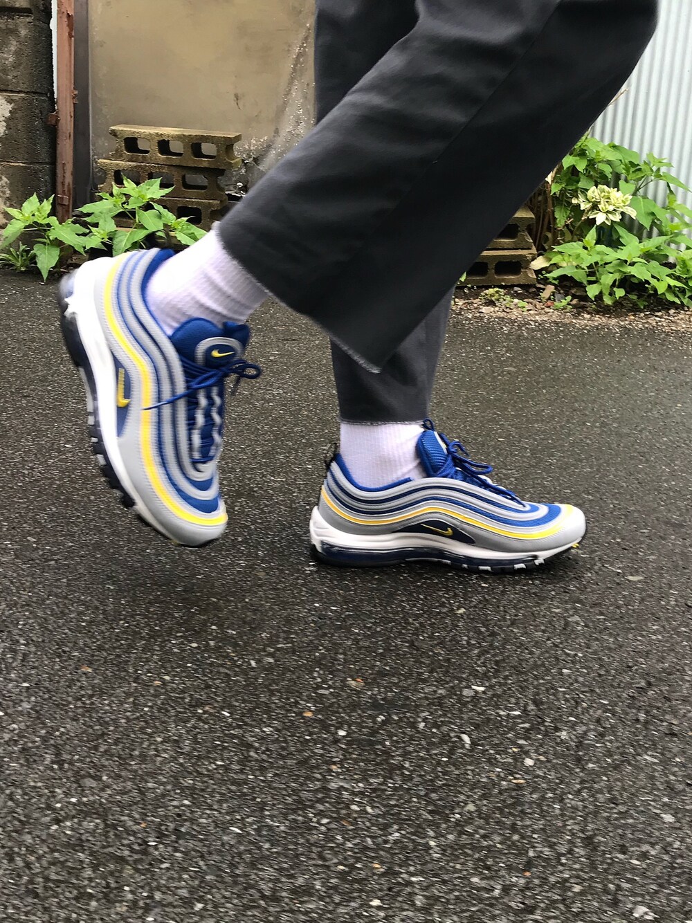 しのぶのスニーカー「NIKE ナイキ NIKE AIR MAX 97 ナイキ エア マックス 97 921826 006WOLF GREY/TOUR YELLOW-GYM BLUE-WHITE-BLACK」を使ったコーディネート