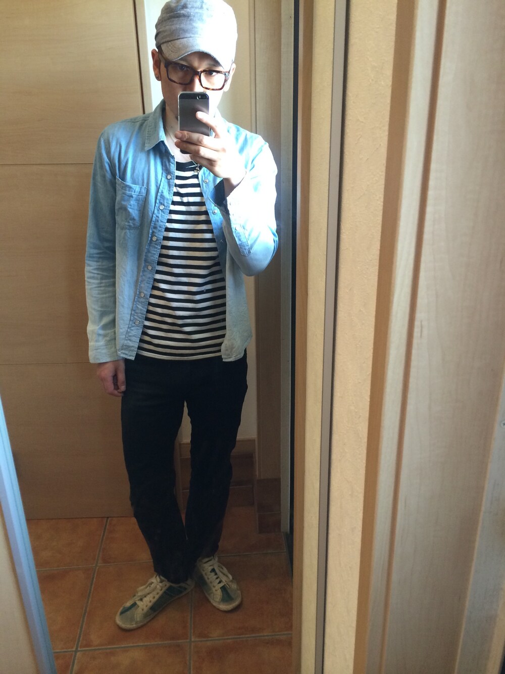 帽子 :しまむら メガネ :300匀 シャツ :WOMB インナー :たぶんWOMBで990円 デニム :UNIQLO 靴 ;DIESEL シンプルに。