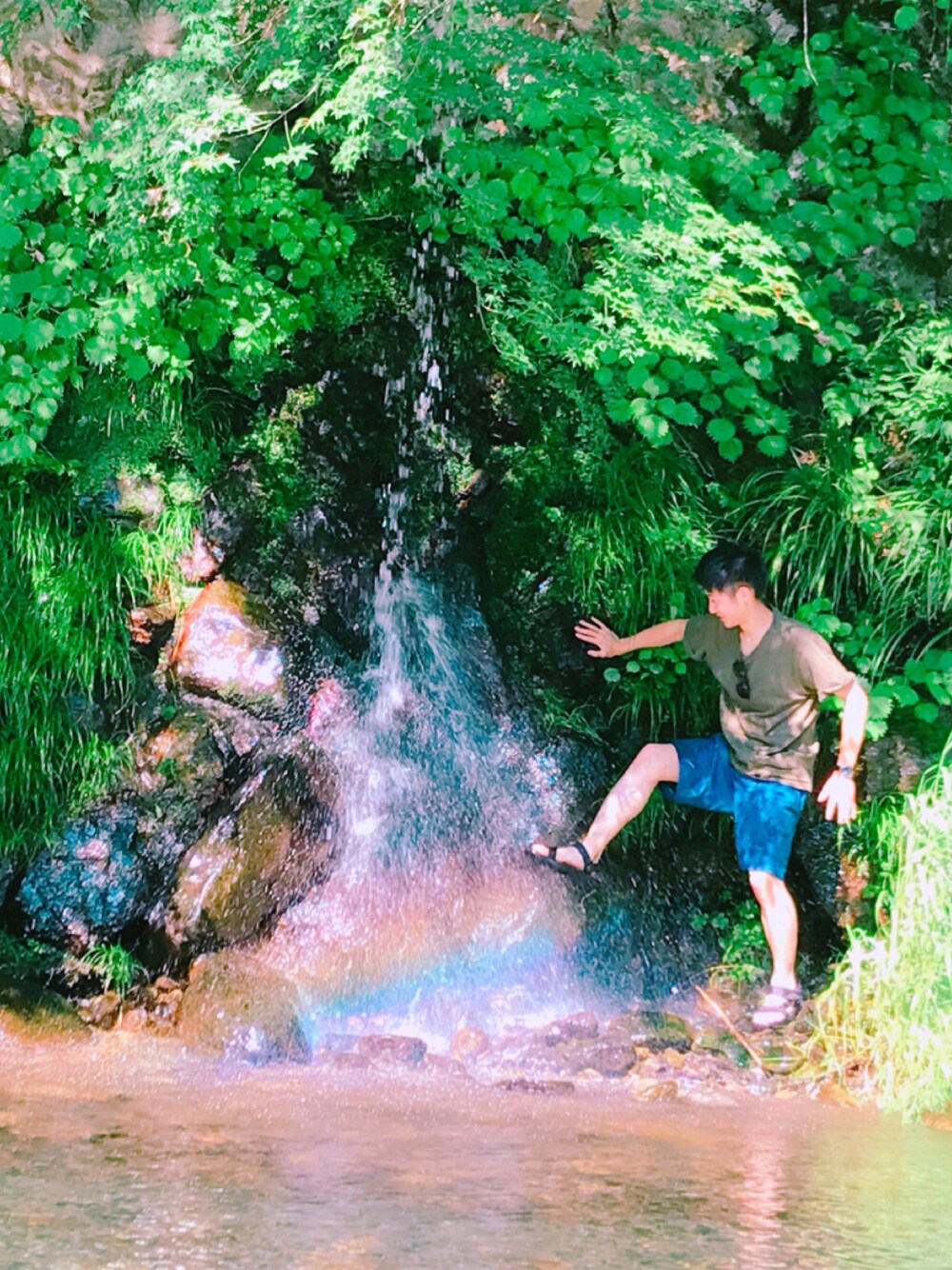 産まれて初めて虹を踏んだよ🌈 奇跡的な写真とれました👏 夏のBBQコーデ○ 夏はテバサンダルにお世話になります!!