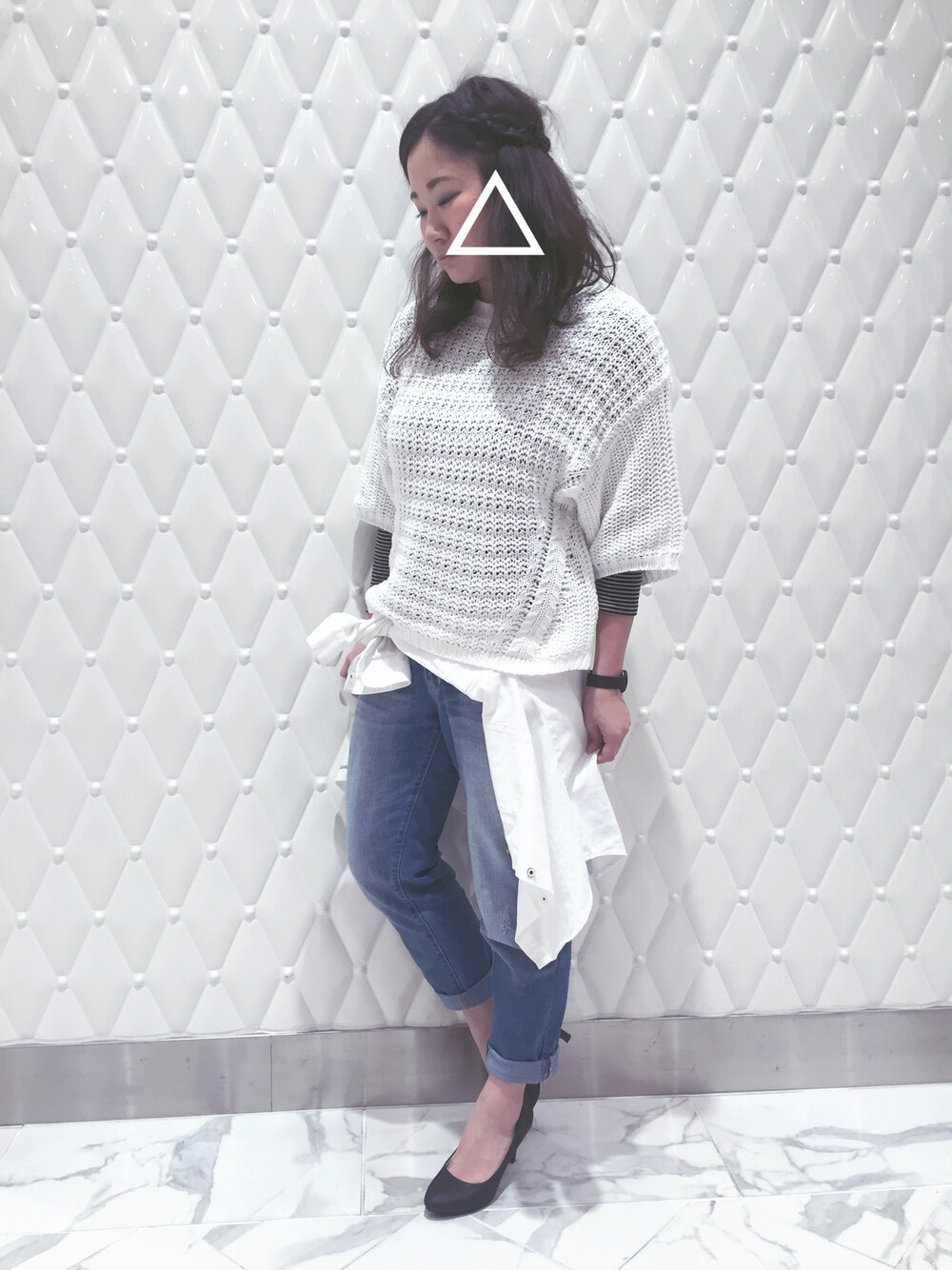 白ニット×デニム…♡ 今日から春メイク 大人カラーでアレンジ頑張ろ!