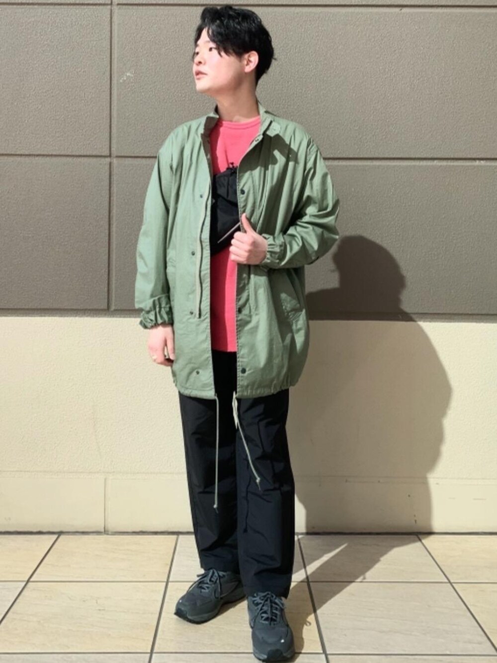 身長・177cm 着用サイズ(パンツ以外L・パンツM) 男性らしいカーキやブラックにピンクを合わせ、少し華やかな明るい要素を加えました。ピンクは単体だと挑戦的に感じる方も多いかもしれませんが、他のアイテムを黒やカーキ等でまとめると相性もいいです! サイズ感はパンツだけベルト付きなので、Mを着用してますが、他はLで丁度いい雰囲気でした。