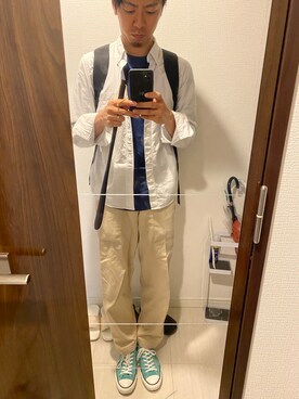 東京在住の金融系の会社員。年相応の落ち着きと無難になりすぎないカッコよさの両立にチャレンジしています。 会社に行く時の服装にもワンアクセントを。脱白T &ジーンズ!