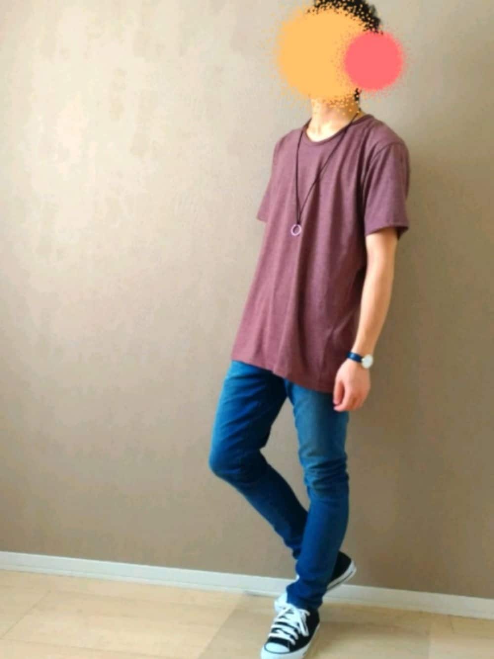 シンプル極まりないコーデ🍫 このTシャツ、大変コスパがよくて重宝してます。 ブラウンは茶色よりはレンガ色に近いイメージ。 XLを購入しましたが、着丈が絶妙でシルエットが細長く見えました。 トップス:XL ボトムス:31 スニーカー:27