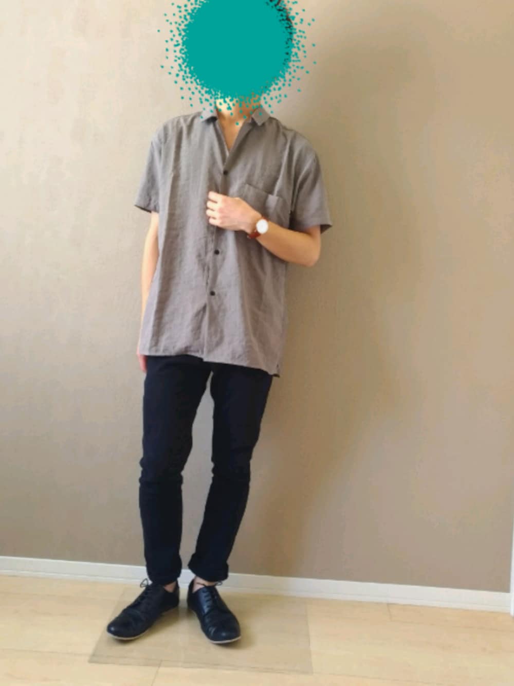 シャツの襟はハーフオープンな感じで綺麗めに💎 シンプルと手抜きは紙一重ですね🤔