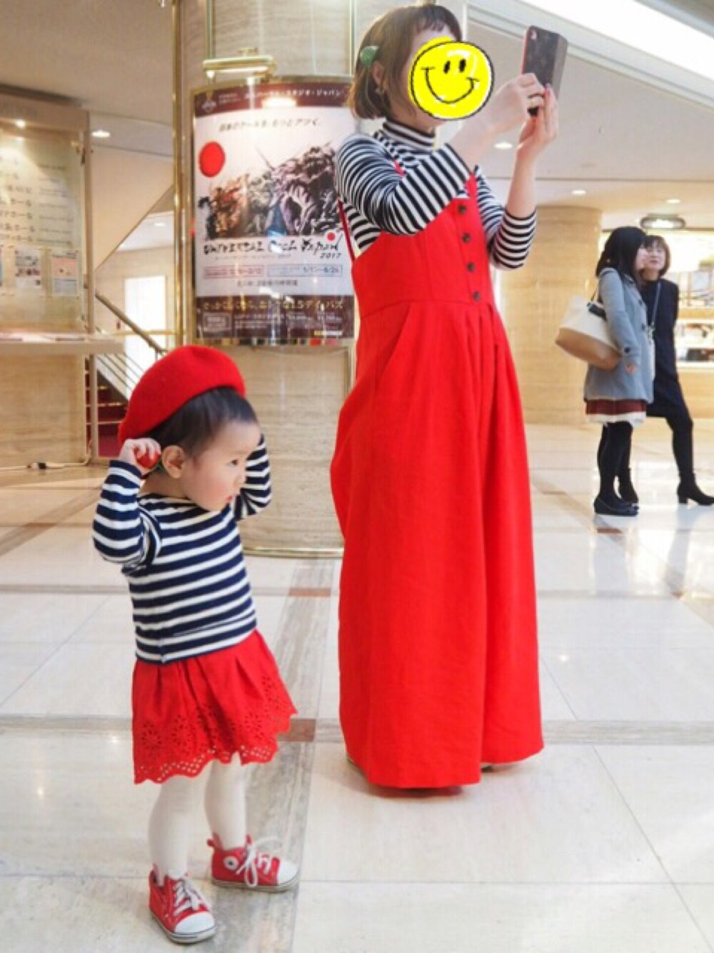 いちごビュッフェコーデ( ^ω^ ) 親子、お友達とも赤リンク♬