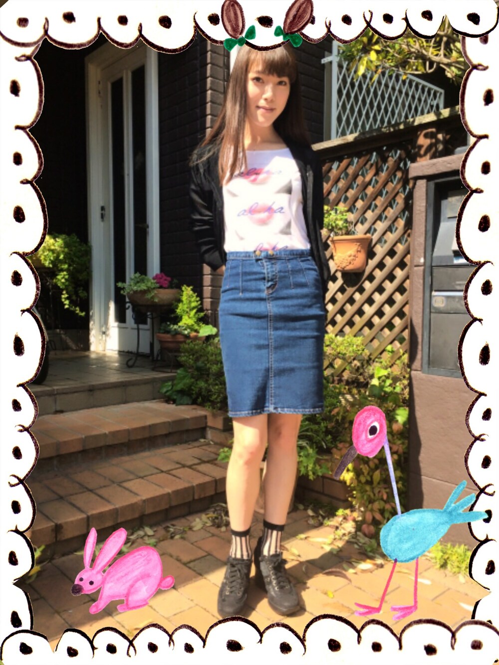 スニーカー、ペンシルスカートのカジュアルコーデ