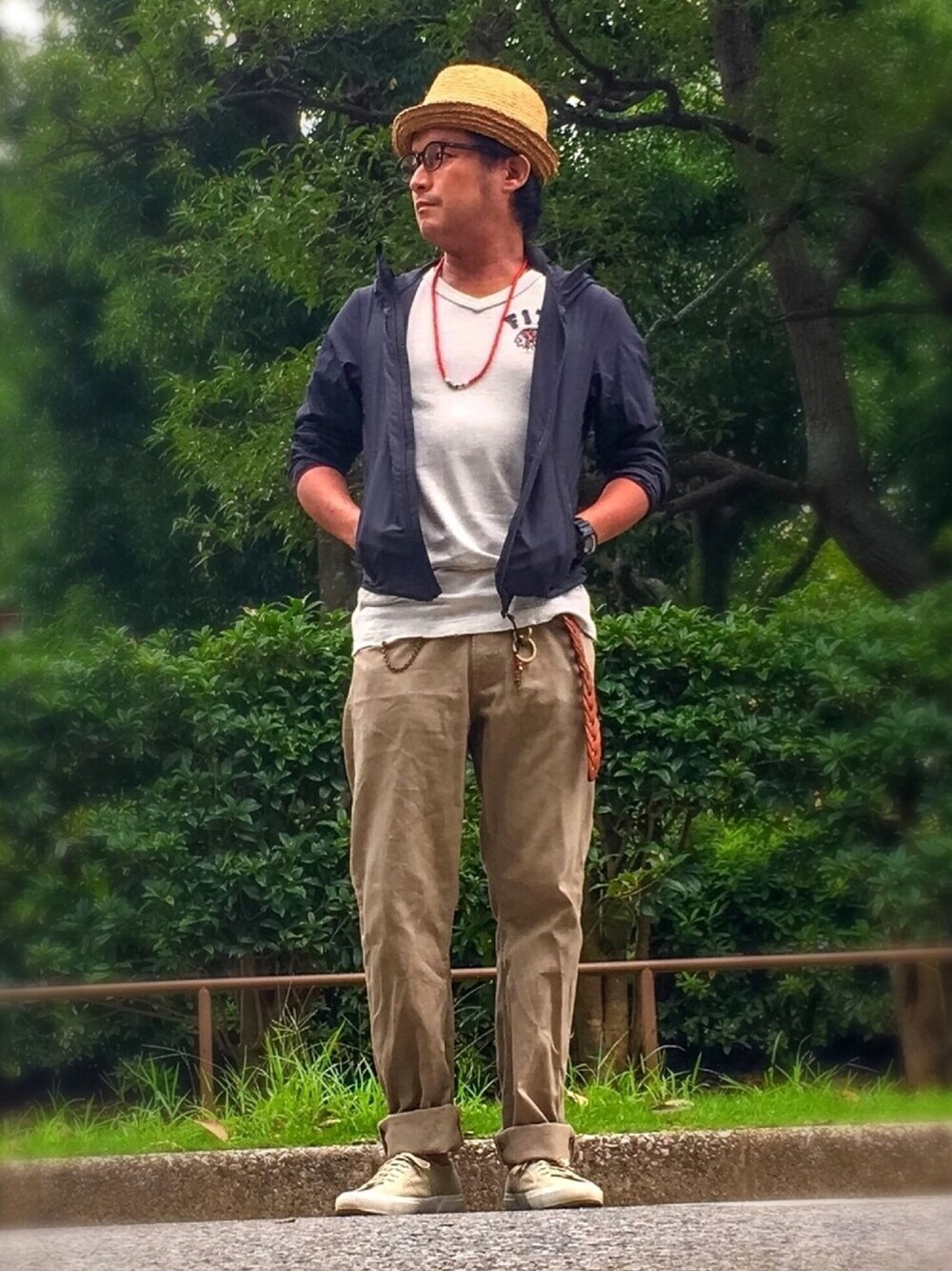 ♯狙うべきはベージュスニーカー ♯季節感たっぷりのストローハット ♯コーデの簡単アクセントはベルト